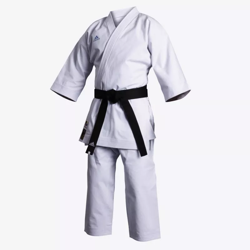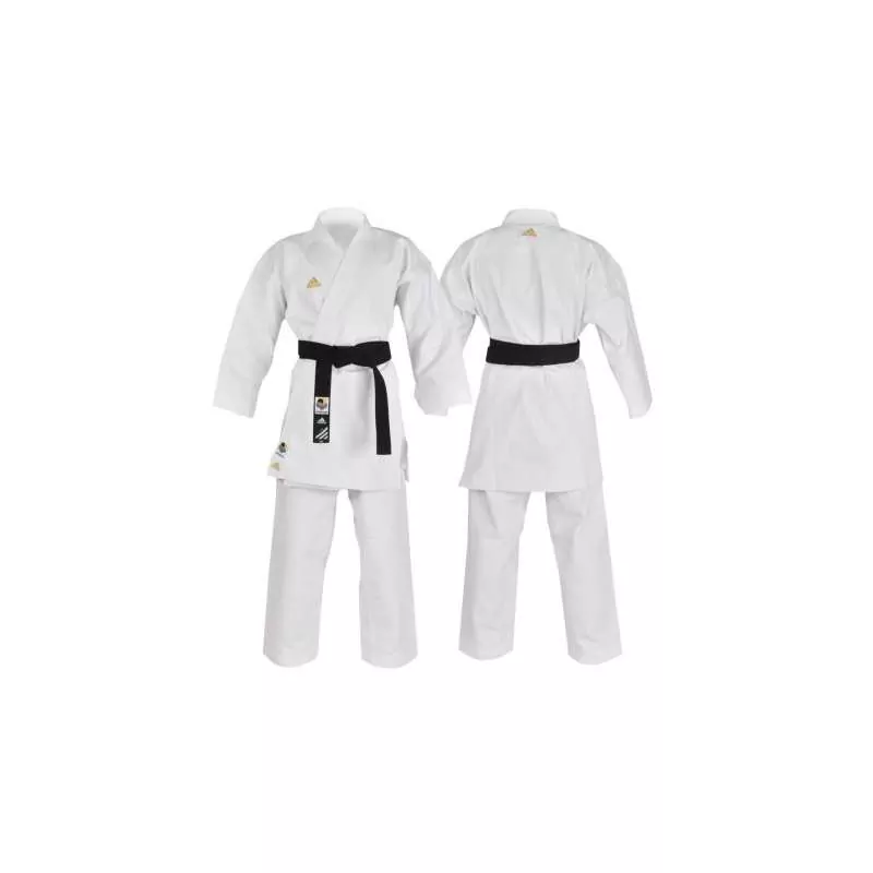 Caractéristiques : Kimono de karaté Adidas homologué WKF, spécialement conçu pour la compétition de katas grâce à sa fabrication en polyester et coton de haute qualité, avec un grammage adapté à ce type de compétition. Il présente une coupe japonaise traditionnelle, confortable et résistante, très agréable au contact de la peau. Ce kimono est vendu sans ceinture. Il est identifiable grâce au sceau d’homologation sur le revers et à l’étiquette dorée arborant le logo de la marque.