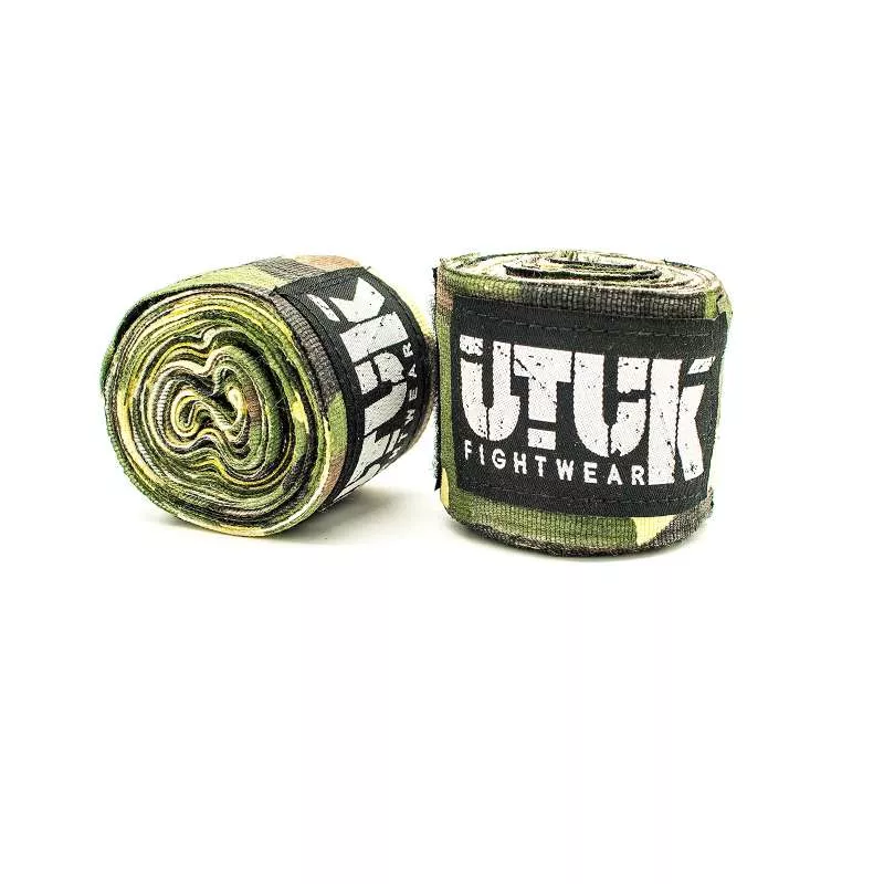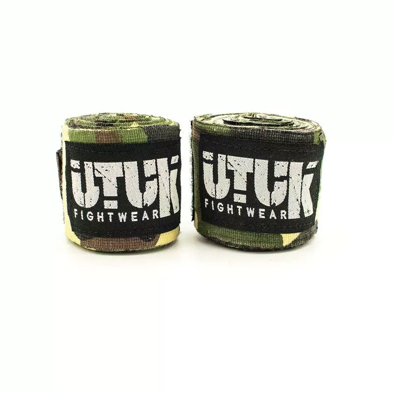 Tailles : bandages de boxe de 5 mètres en différentes couleurs (noir, bleu, citron vert, rouge et camo urbain).