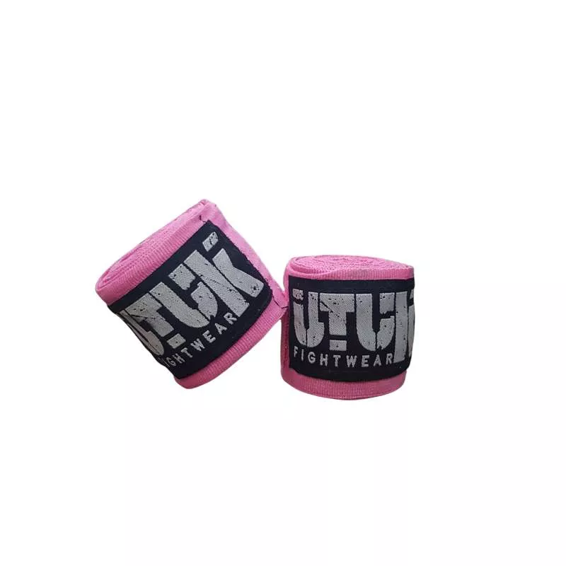 Caractéristiques: bandages Utuk roses en coton polyester avec un tissu semi-élastique, une boucle pour introduire le pouce pour aider à commencer le bandage et une fermeture velcro. Le bandage Utuk mesure 3,5 mètres. Logo de la marque à côté de la fermeture velcro. Un rapport qualité-prix spectaculaire. Pour protéger vos mains lorsque vous donnez des coups de poing et éviter les blessures aux doigts, aux mains ou aux articulations.