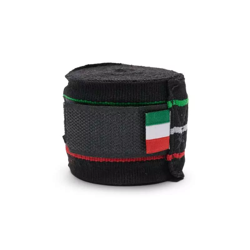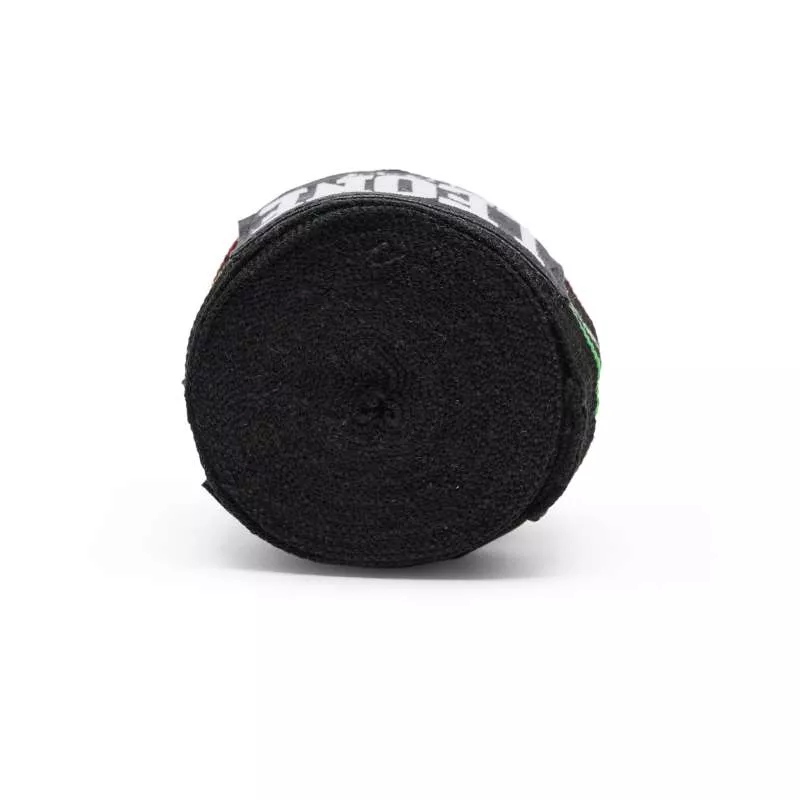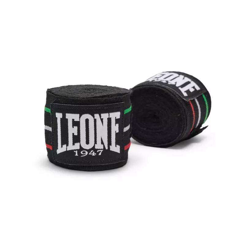 Caractéristiques: Les bandages portant le drapeau du Leone sont fabriqués en coton de première qualité, avec une texture semi-élastique combinant les couleurs noir et trois bandes rouges, blanches et vertes sur l’ensemble du bandage. Ils se distinguent également par le fait qu’ils s’adaptent parfaitement à la main, offrant ainsi une grande sécurité. Fermeture velcro avec étiquette Logo Leone 1947 et guide de corde pour insérer le pouce. Ces protections de boxe sont le complément parfait de l’entraînement quotidien avec les gants Leone.