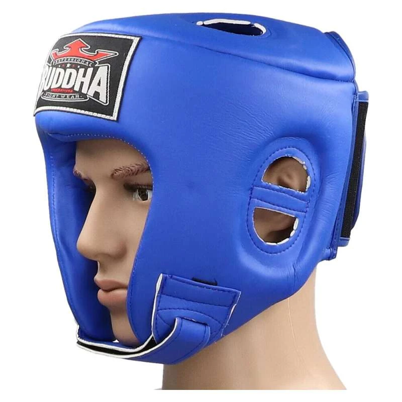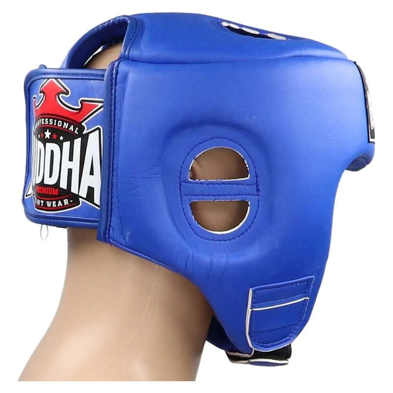 Caractéristiques: casque Buddha en microfibre de haute qualité, rembourrage en mousse double densité et large fermeture velcro à l’arrière et au menton pour un meilleur ajustement. Ce modèle améliore la protection des pommettes, des sourcils et du menton et renforce les zones sensibles et les coutures. Couleur bleue. Logo de la marque à l’avant et à l’arrière du casque.