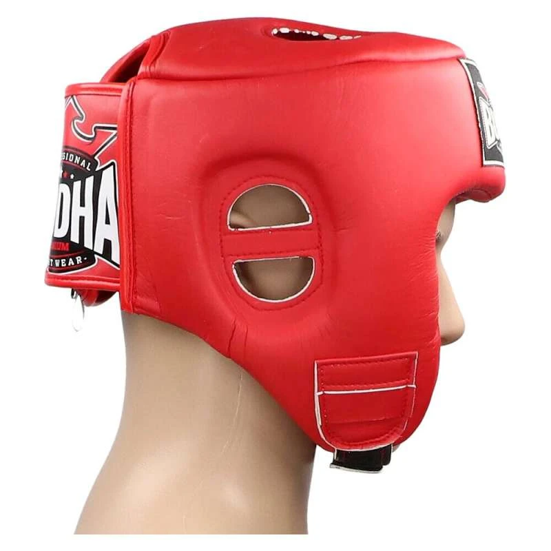 Caractéristiques: casque Buddha en microfibre de haute qualité, rembourrage en mousse double densité et large fermeture velcro à l’arrière et au menton pour un meilleur ajustement. Ce modèle améliore la protection des pommettes, des sourcils et du menton et renforce les zones sensibles et les coutures. Couleur rouge. Logo de la marque à l’avant et à l’arrière du casque.