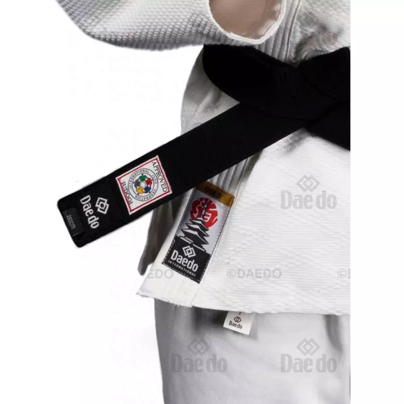 Caractéristiques: 525GSM Daedo kimono fait de coton. Veste en grain de riz. Fermeture traditionnelle par cordon de serrage pour un meilleur ajustement. Confortable et très léger. Renforcements dans les zones vulnérables pour supporter un entraînement de haut niveau. Modèle NON approuvé par l’IJF. Couleur blanche