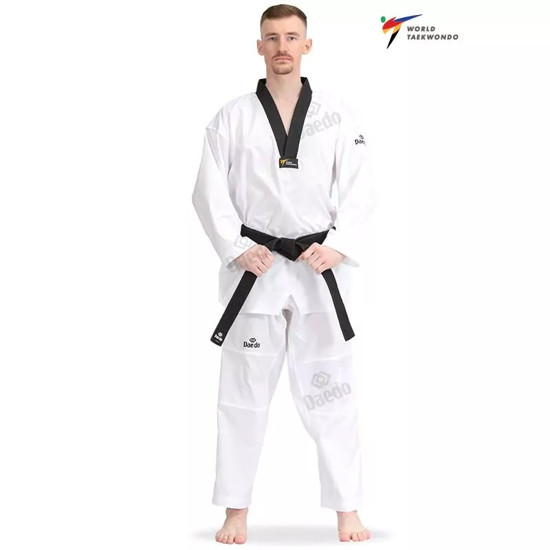 Tailles: Dobok compétition ultra WT Daedo TA20053 col noir disponible de la taille 130cms à la taille 200cms.