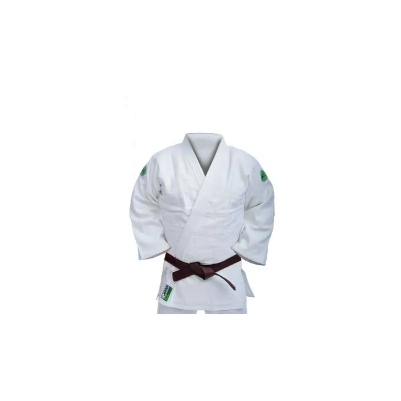 Caractéristiques : Fabriqué en poliester coton 450gms. Couleur blanche. Veste de judo traditionnelle avec un tissu de riz pour plus de solidité. Pantalon avec taille élastique et corde intérieure jusqu’à la taille 150. À partir de la taille 160, fermeture traditionnelle par corde. Ceinture blanche incluse. Bretelles de judo cousues en japonais.