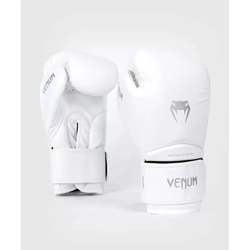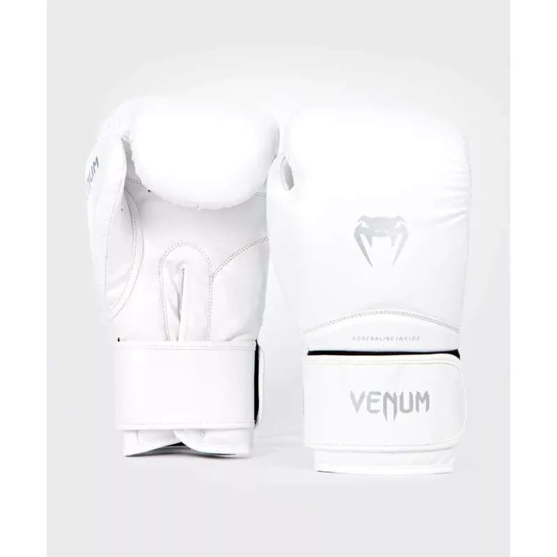 Caractéristiques: conteder 1.5 Les gants Venum sont fabriqués en cuir synthétique de haute qualité. Rembourrage en mousse multidensité pour absorber les chocs et protéger vos mains. Superbe design blanc avec des détails de marque gris. Large fermeture velcro pour un ajustement idéal.