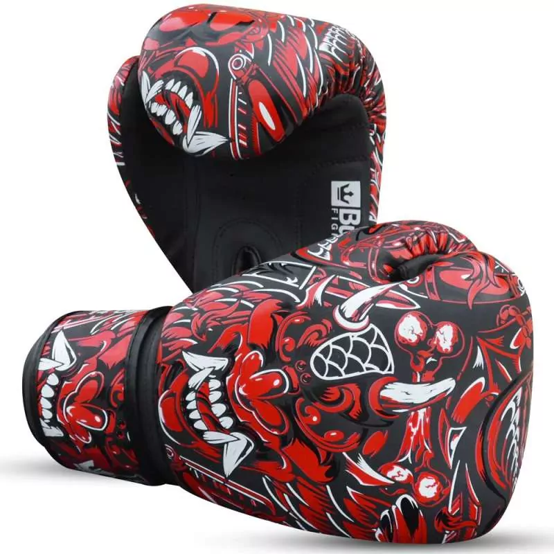 Caractéristiques: gants fantasy devil en cuir synthétique de haute qualité. Large fermeture velcro pour un ajustement optimal. Perforations sur la paume de la main pour faciliter la circulation de l’air lors de la frappe. Motif rouge sur fond noir. Buddha améliore la résistance de ces gants afin qu’ils ne perdent pas leur motif. Rembourrage chaud pour l’absorption des chocs et la sécurité des mains, des poignets, des articulations et des doigts.