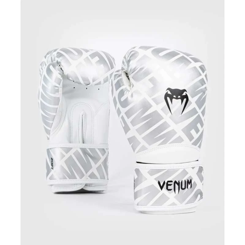 Gants de Muay Thai Venum contender 1.5 argent blanc