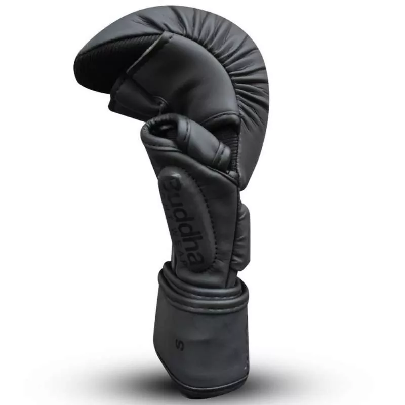 Caractéristiques: Fabriqué en cuir avec des zones élastiques pour un meilleur confort. Large fermeture velcro et bon rembourrage d’absorption dans la zone de frappe. Pouce protégé et zone indépendante pour chacun des doigts. Design noir sur noir. Conçu pour l’entraînement MMA de niveau débutant et intermédiaire. Permet de s’entraîner à la frappe et au grappling.