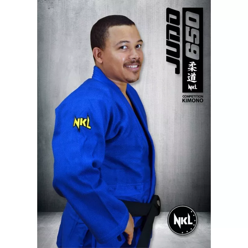 Caractéristiques: Fabriqué en coton 60% et polyester 40% et un grammage de 650gms. Caractéristiques très similaires aux kimonos de judo homologués mais sans homologation, bien qu’ils soient autorisés pour les enfants et les cadets. Veste en grain de riz et logo en couleur dorée. Pantalon confortable. Egalement disponible la combinaison de judo de compétition NKl en couleur blanche.