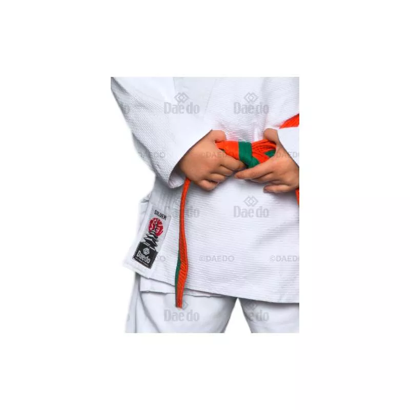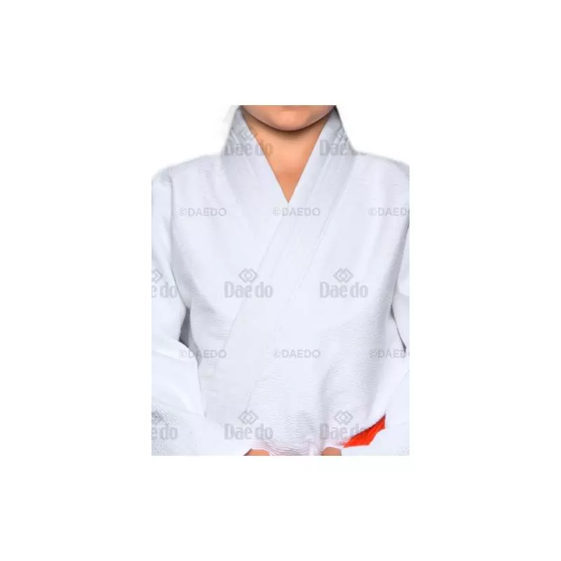 Caractéristiques: 350GSM Daedo kimono fait de coton. Veste en grain de riz et pantalon avec taille élastique et cordon de serrage intérieur pour un meilleur ajustement jusqu’à la taille 150cms. Fermeture traditionnelle par cordon de serrage à partir de la taille 160. Confortable et très léger. Renforcements dans les zones vulnérables pour supporter un entraînement de haut niveau.