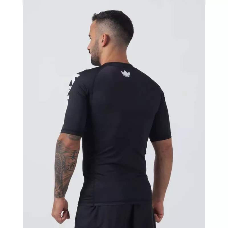 Caractéristiques: Le rashguard noir à manches courtes Kingz est composé de 90 % de polyester et de 10 % d’élasthanne pour un ajustement parfait au contact de la peau. Tissu durable et graphiques sublimés pour une résistance accrue. Col rond et manches courtes. Noir avec détails de la marque en blanc.