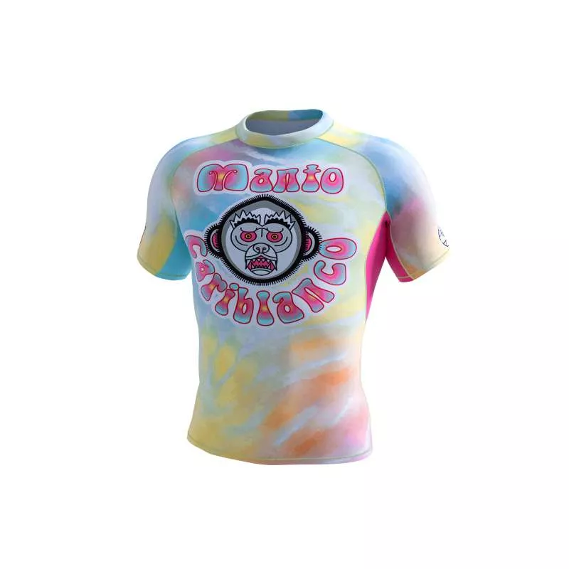 Caractéristiques: rashguard cariblanco tie dye en 84% polyester et 16% élasthanne, col rond et manches courtes. Très confortable et léger, avec des coutures plates et élastiques. Se porte comme une seconde peau. Multicolore. Impression par sublimation.