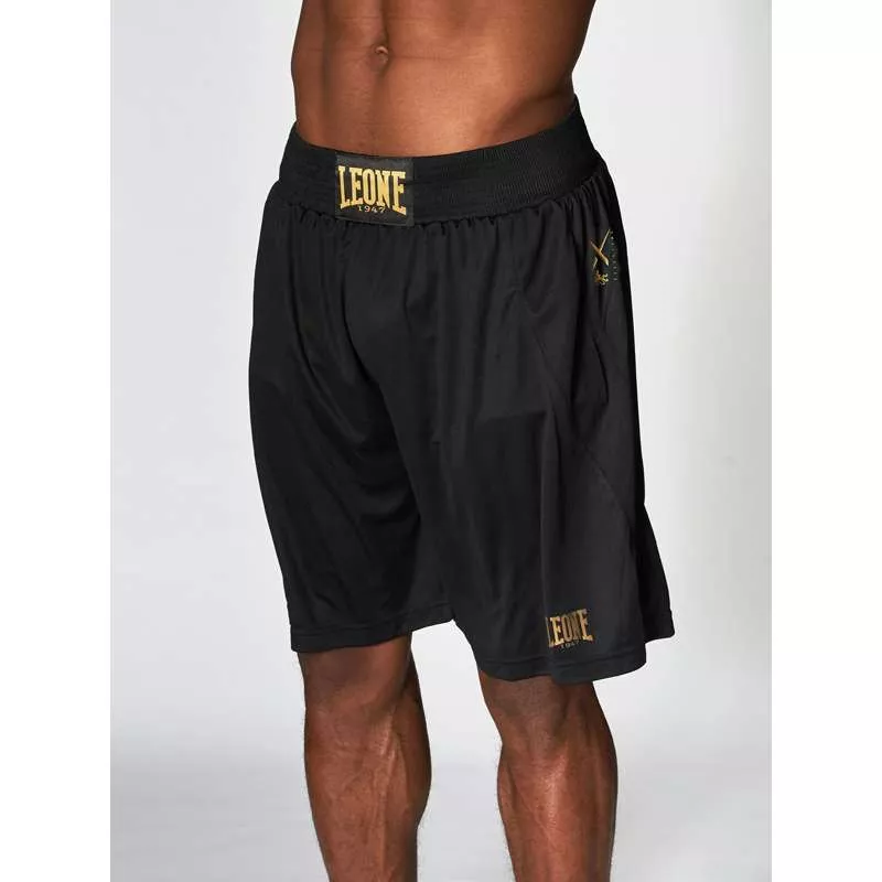 Caractéristiques: Fabriqué en polyester de haute qualité. Pantalon Leone très confortable avec fermeture élastique à la taille. Logo discret imprimé par sublimation en or sur fond noir. Large ceinture et cordon de serrage intérieur. Se distingue par sa coupe de boxe longue. Pantalon de boxe discret et élégant avec une excellente coupe.