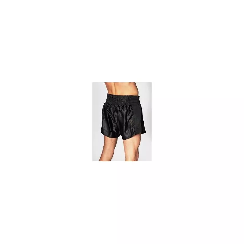 En polyester, avec une taille étroite et un cordon de serrage intérieur. Comme un bon pantalon de muay thai, il a une coupe serrée et courte pour avoir plus de liberté de mouvement avec les jambes. Le design est sobre en noir avec le logo en petit doré sur le devant. Équipement de Muay Thai pour l’entraînement quotidien ou la compétition.