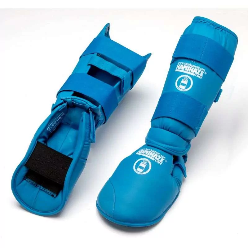 Protège-tibias de karaté Kamikaze bleus