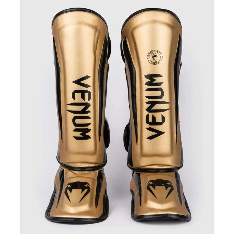 Caractéristiques: protège-tibias muay thai Venum elite standup fabriqués à la main en Thaïlande, rembourrage en mousse multi-densité de haute qualité avec renforts au niveau du tibia et de la cheville. Coque en PU fabriquée au Japon, deux grandes fermetures Velcro et deux sangles de fixation au niveau du pied, l’une allant au talon et l’autre à la plante du pied. Conception anatomique pour une mobilité maximale. Design spectaculaire proposé par Venum en couleur or et avec les détails de la marque en noir.