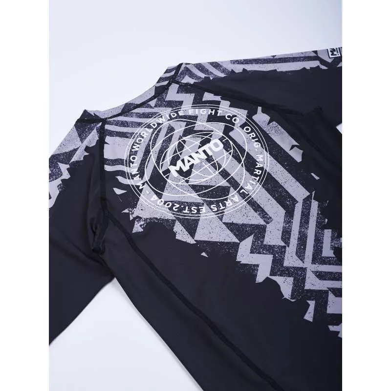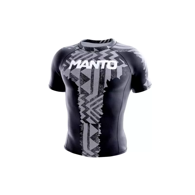 Caractéristiques: fragments de rashguard Cape très confortable et légère avec des coutures plates et élastiques. S’adapte comme une seconde peau. Impression par sublimation. Composé de 84 % de polyester et de 16 % d’élasthanne, col rond et manches courtes. Couleur noire et grise.