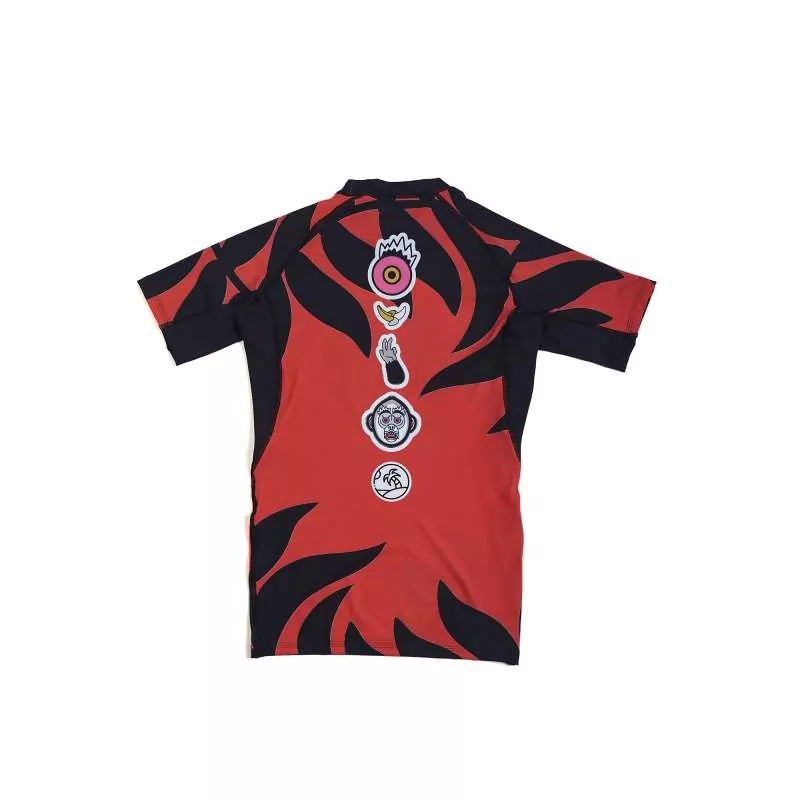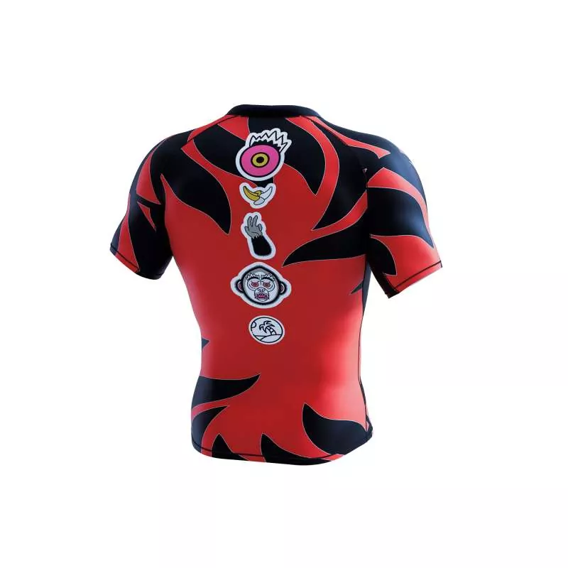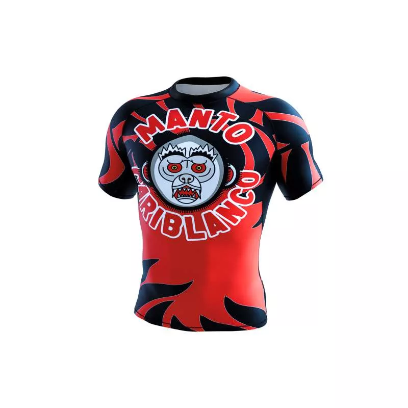 Caractéristiques: cariblanco Manto lycra composé de 84% de polyester et 16% d’élasthanne, col rond et manches courtes. Très confortable et léger, avec des coutures plates et élastiques. Se porte comme une seconde peau. Noir et rouge. Impression par sublimation.