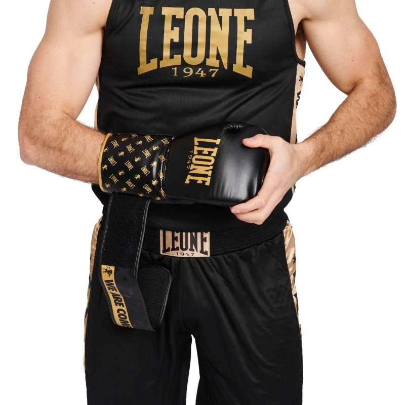 Caractéristiques : Short de boxe Leone en 100% polyester de haute qualité. Taille élastiquée et coupe longue. Couleur noire avec détails de la marque en couleur or. La bande latérale du pantalon est en satin.