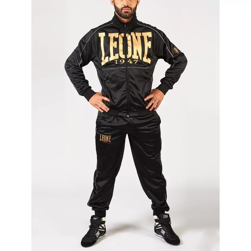 Caractéristiques: Le survêtement Leone 1947 avec logo noir et or est fait de polyester et de coton avec une impression par sublimation de haute qualité. Veste avec fermeture à glissière et pantalon à cordon de serrage pour un meilleur ajustement, avec un design accrocheur soulignant le nom de la marque sur la poitrine. Poches latérales et arrière.
