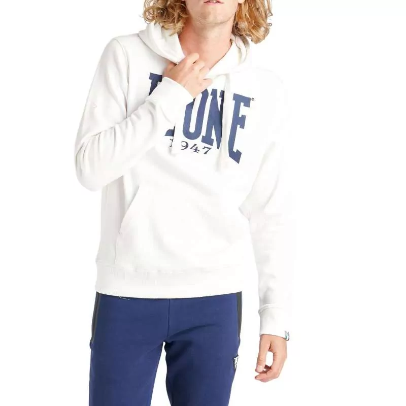 Caractéristiques : sweat Leone blanc en 92% coton et 8% élasthanne de couleur blanche et logo de la marque en bleu foncé. Logo imprimé imperméable. Capuche avec cordon de serrage intérieur et poche centrale. Étiquette sur les poignets du sweat avec le drapeau italien.