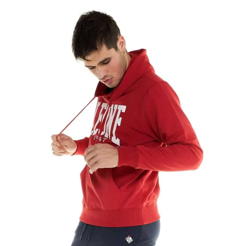 Caractéristiques : sweatshirt Leone à grand logo en 92% coton et 8% élasthanne de couleur rouge et logo de la marque en blanc. Logo imprimé imperméable. Capuche avec cordon de serrage intérieur et poche centrale. Étiquette sur les poignets du sweat avec le drapeau italien.