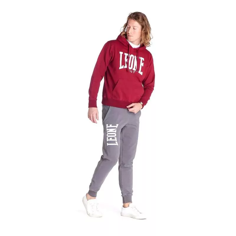 Caractéristiques: sweat bordeaux Leone en 92% coton et 8% élasthanne de couleur bordeaux et logo de la marque en blanc. Logo imprimé imperméable. Capuche avec cordon de serrage intérieur et poche centrale. Etiquette sur les poignets du sweat avec le drapeau italien.