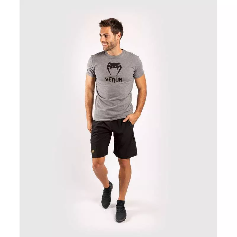 Caractéristiques: Design gris élégant avec logo noir. Col rond, manches courtes et coupe cintrée avec sérigraphie sublimée exclusive de Venum. T-shirt d’entraînement Venum composé de 95 % de coton et de 5 % d’élasthanne, ce qui permet un ajustement optimal au corps.