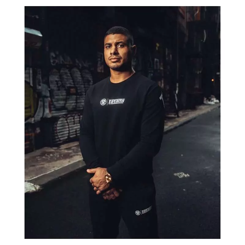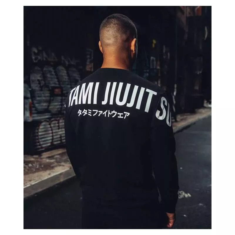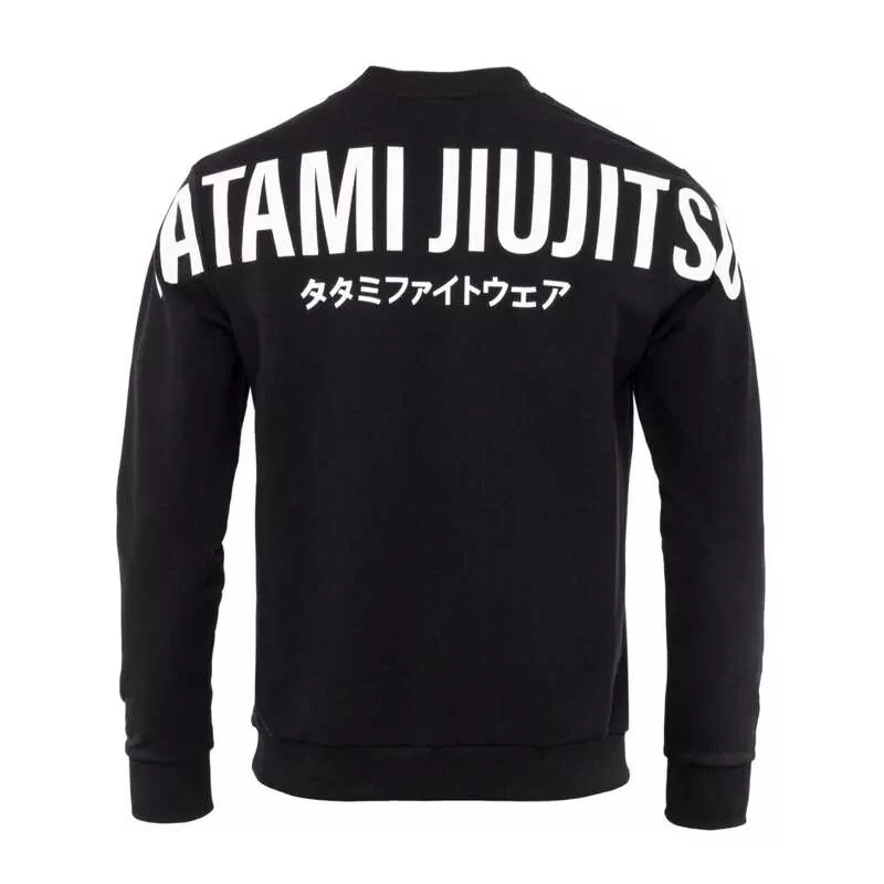 Caractéristiques: Sweatshirt de jiu jitsu de Tatami Fightwear, composé de 95 % de coton et de 5 % d’élasthanne. Col rond et manches longues. Couleur noire avec logo et détails de la marque en blanc. Logo de la marque sur le devant et lettres Tatami jiu jitsu sur le dos du sweat-shirt.